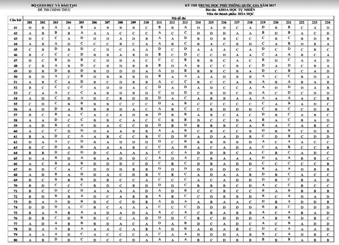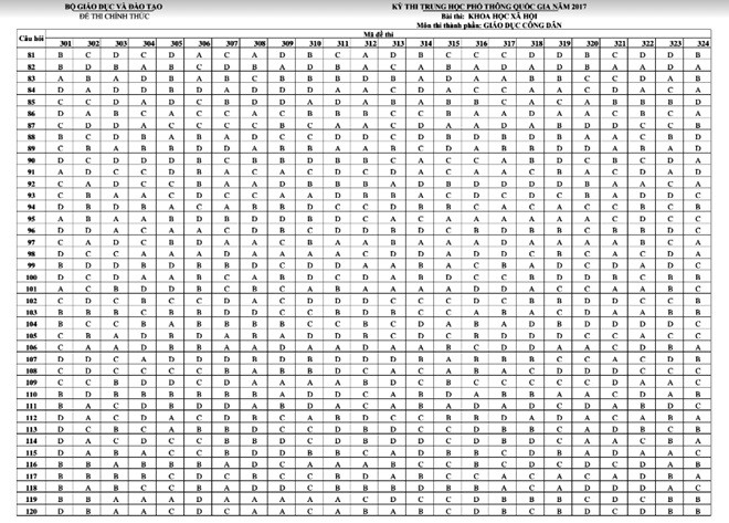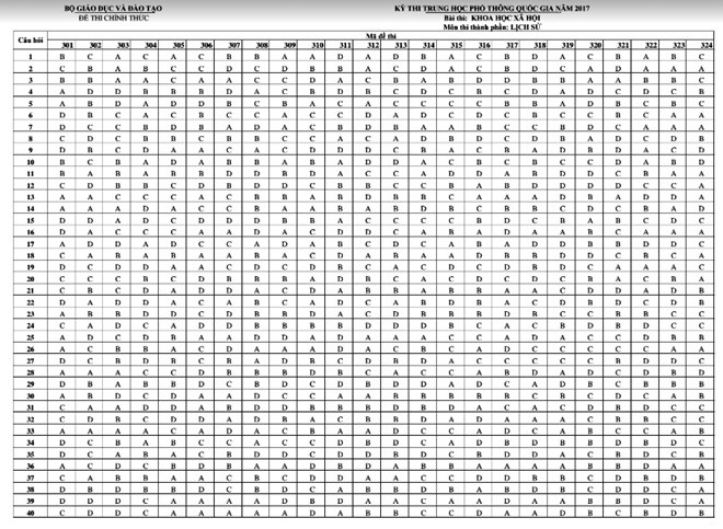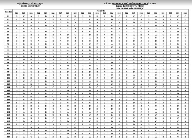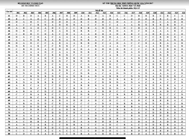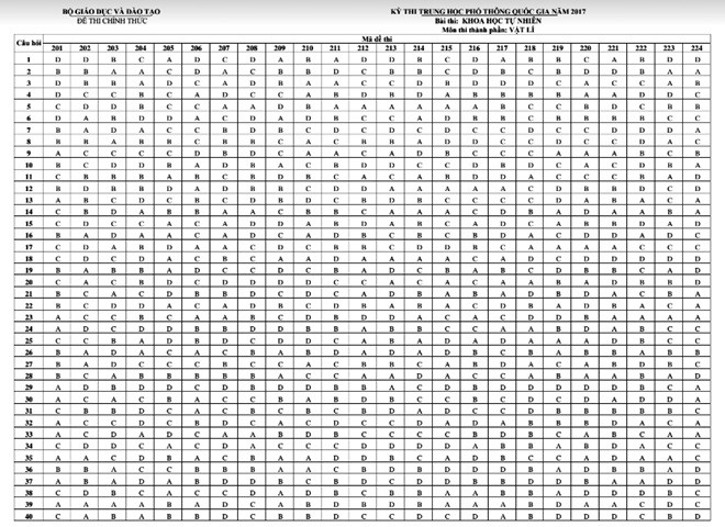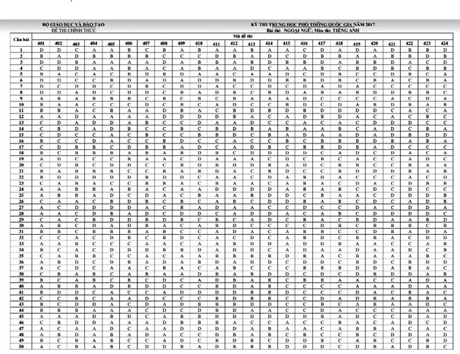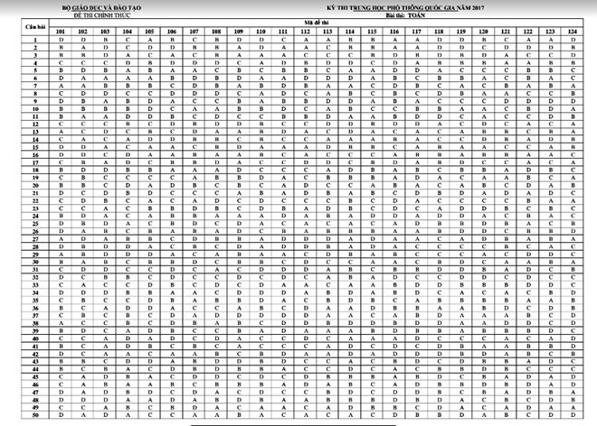 Báo điện tử Giáo dục Việt Nam xin giới thiệu đáp án của Bộ Giáo dục và Đào tạo: