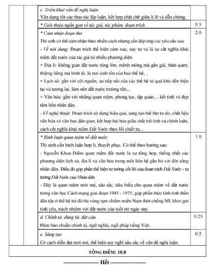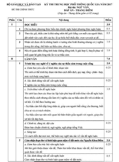 Đáp án môn thi Ngữ Văn