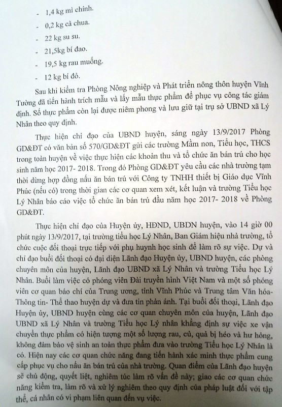 Cũng theo ông Thái, để giảm bớt tình hình căng thẳng, chiều ngày 13/09, lãnh đạo huyện Vĩnh Tường cũng đã làm việc với nhà trường và mời toàn bộ phụ huynh đến họp để lắng nghe ý kiến của các phụ huynh.