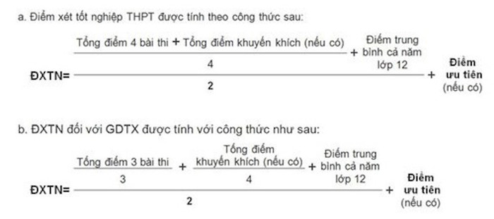 Theo đó, công thức tính điểm xét tốt nghiệp trung học phổ thông quốc gia năm 2017 như sau: