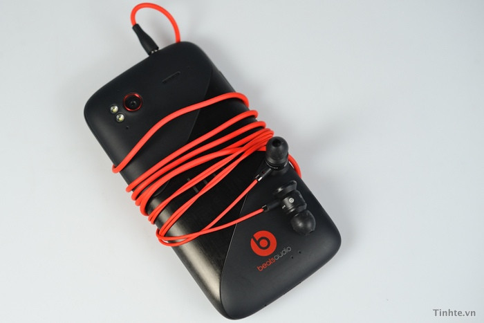 | Kèm theo máy là một tai nghe nhét tai, chống ồn của Beats Audio với dây màu đỏ, nút điều kiển móng kim loại và phần tai nghe nhìn khá hiện đại. Tai nghe có lẽ là cái mà bạn sẽ rất thích trong hộp của Senstion XE vì trước giờ hầu như các tai nghe theo máy hầu hết là tai nghe giá rẻ. Và ít nhất thì cái tai này cũng là tai của Beats Audio thật chứ không phải một chiếc nhái mà có thể bạn sẽ mua phải mua mua ở ngoài. |