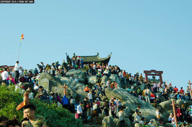 | Hệ thống bậc thang được xây dựng trên hệ thống núi đá vôi đường lên đỉnh núi Cái Hạ do Công ty Cổ phần Du lịch Tràng An đầu tư xây dựng. (Ảnh: Minh Đức/TTXVN) |