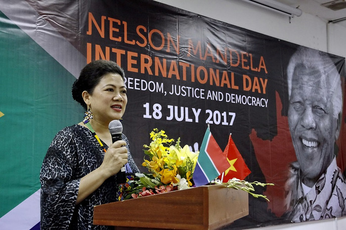 | Đại sứ đặc mệnh toàn quyền Nam Phi tại Việt Nam - ông Mpetjane Kgaogelo Lekgoro phát biểu tại lễ kỷ niệm. |
