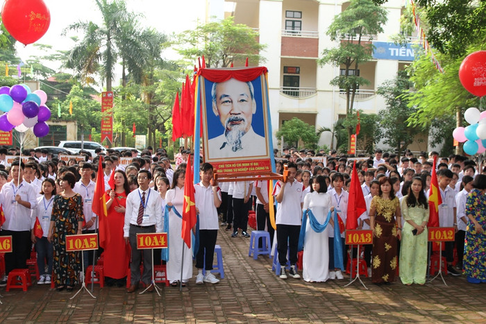 Trong không khí phấn khởi ngày tựu trường, thầy trò Trường Trung học phổ thông Bến Tre (tỉnh Vĩnh Phúc) đã có lễ khai giảng ngắn gọn, trang trọng nhưng vui tươi, ấm áp.