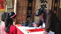 Những thầy đồ nghèo đưa cho gia đình bạn những mảnh giấy điều nhỏ trên đó ghi những lời chúc gia đình thịnh vượng.