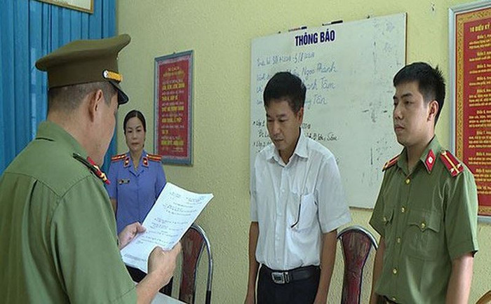 | Cơ quan công an bắt tạm giam một số cán bộ dính líu đến tiêu cực trong kỳ thi Trung học phổ thông quốc gia ở Sơn La (Ảnh: Báo Lao động) |