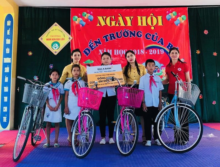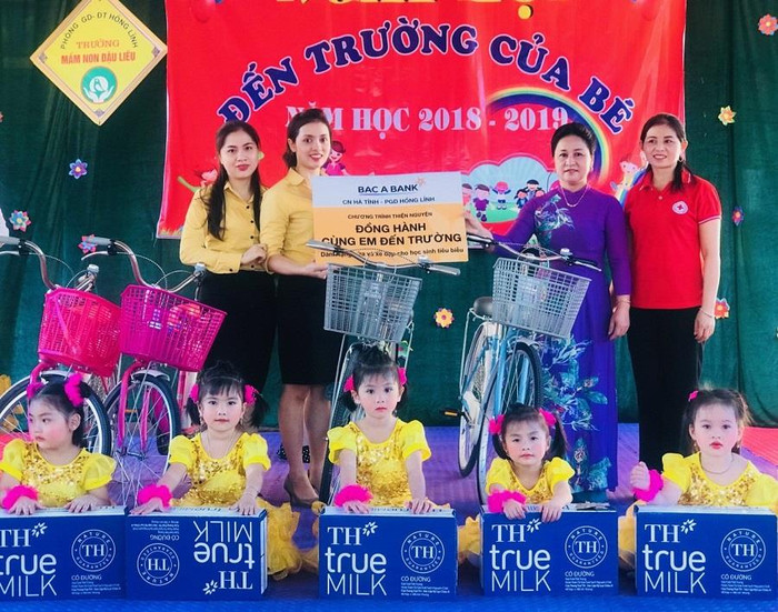 Tại Thị xã Hồng Lĩnh, đại diện BAC A BANK phối hợp cùng Quỹ Vì Tầm Vóc Việt đã tổ chức tặng xe đạp và sữa tươi cho các em học sinh: Tiểu học Đậu Liêu, Tiểu học Nam Hồng, Trung Lương.