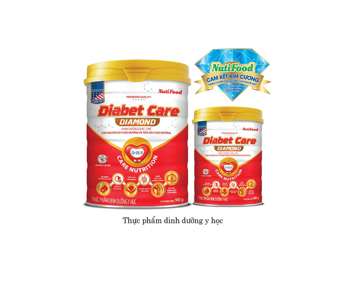 Với chỉ số đường huyết thấp GI=26.9, Diabet Care Diamond là giải pháp dinh dưỡng đặc biệt cho người đái tháo đường và tiền đái tháo đường đến từ Chuyên Gia Dinh Dưỡng NutiFood. Diabet Care Diamond là dòng sản phẩm cao cấp có các dưỡng chất như Isomaltulose, Erythritol và FOS giúp người đái tháo đường ổn định đường huyết để duy trì sức khoẻ hạn chế các biến chứng. Ngoài ra với công thức Care Nutrition là sự kết hợp giữa các hợp chất MUFA, PUFA và Vitamine K2 tốt cho tim mạch, FOS ngăn ngừa táo bón, Nano Calci kết hợp với bộ ba Vitamin K2, D3, Phốt Pho giúp giảm nguy cơ loãng xương. Diabet Care Diamond cung cấp đầy đủ dưỡng chất và năng lượng cho người đái tháo đường và tiền đái tháo đường mang lại cuộc sống vui khoẻ mỗi ngày. |