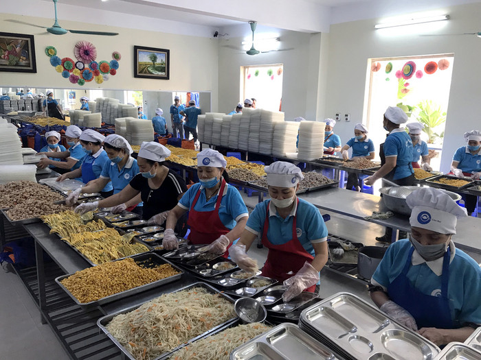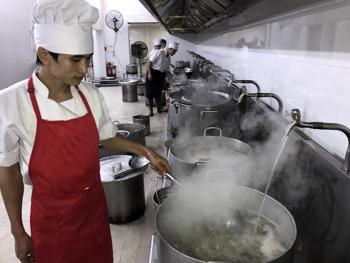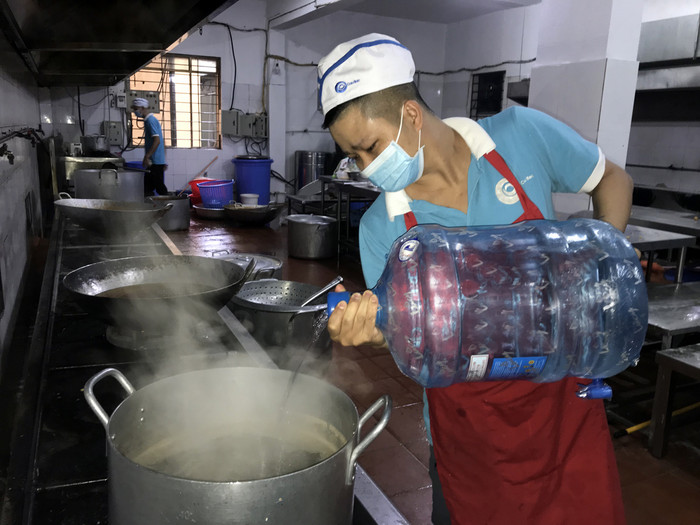Nấu ăn phục vụ học sinh bán trú và các cán bộ, giáo viên của nhà trường đều được sử dụng nước đóng bình để đảm bảo, không sử dụng nguồn nước máy Sông Đà.