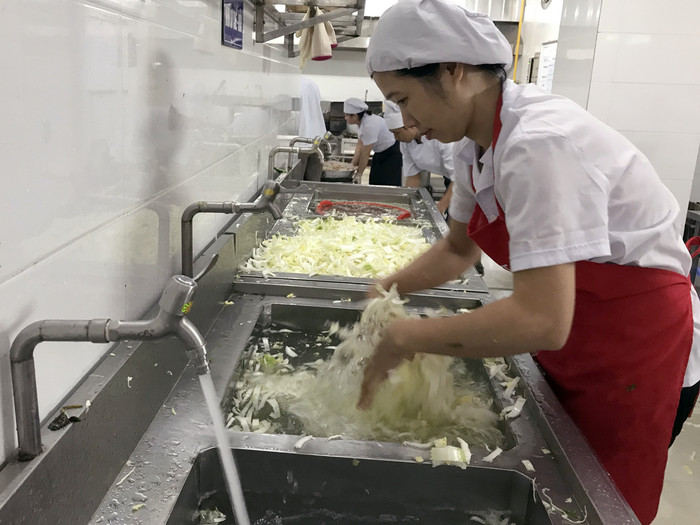Nước rửa thực phẩm của nhà trường luôn được kiểm tra thường xuyên để đảm bảo an toàn về sức khỏe của các em học sinh.