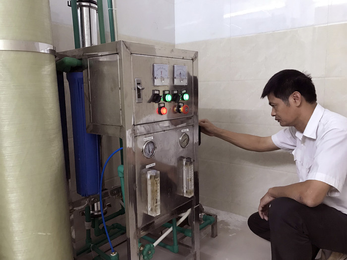 | Trường lắp hệ thống lọc nước để bảo vệ sức khỏe học sinh, vì không yên tâm về chất lượng của Nhà máy nước sông Đà. |
