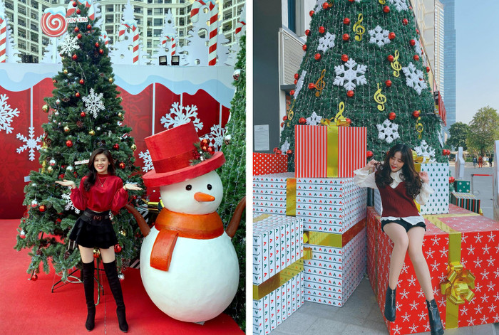 Tại Vincom, giới trẻ cũng thỏa sức sưu tập những bộ ảnh Giáng sinh bên những cây thông luôn “thay áo mới” mỗi mùa Noel về.