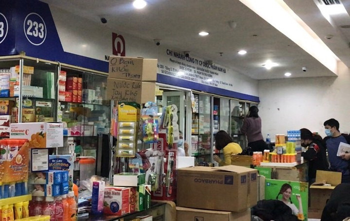 Ngày 03/02/2020, nhiều quầy hàng tại chợ thuốc Hapulico (trên đường Nguyễn Huy Tưởng, quận Thanh Xuân, thành phố Hà Nội) đồng loạt treo biển “Không bán khẩu trang, nước rửa tay, miễn hỏi”.