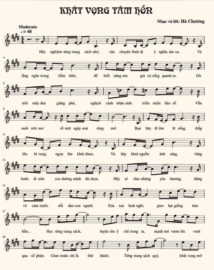 Ca khúc “Khát vọng tâm hồn” ban đầu có tên là “Hạt giống tâm hồn”, được nhạc sĩ Hà Chương đổi tên, hoàn chỉnh phần lời và nhạc trong đại dịch Covid-19 vừa qua. Lời bài hát đề cập đến ý nghĩa của việc đọc sách, khát vọng, ý chí của con người, động viên con người vươn lên khỏi những gian truân, nghịch cảnh; hướng tới lý tưởng sống cao đẹp và khát khao cống hiến cho xã hội.