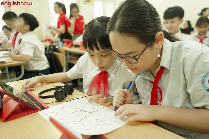 Lớp học thông minh được tổ chức bởi phương pháp học tiếng Anh dễ dàng trên Máy tính bảng cùng hoạt động phản xạ tiếng Anh thực tế mang tên “Hoạt động dự án”.