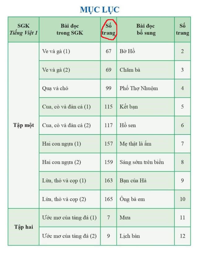 Ngay phần mục lục, các tác giả đã nhầm lẫn khi dùng từ “số trang” (dễ hiểu thành số lượng trang) để chỉ trang số bao nhiêu. Ví như bài “Ve và gà” số trang 67 dễ dàng hiểu thành bài “Ve và gà” có 67 trang thay vì chỉ cần ghi bài “Ve và gà”, trang 67 là được.