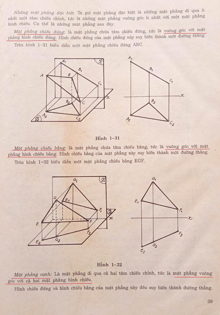 Các “Mặt phẳng chiếu” vuông góc với các “Mặt phẳng hình chiếu” (Hình học họa hình tập 1- Nhà xuất bản Giáo dục Việt Nam [1]).