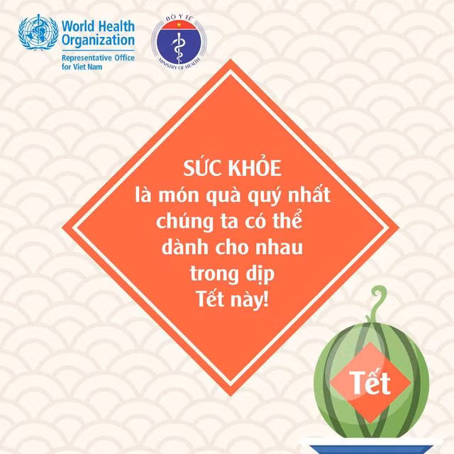 Trong thông điệp của mình, Bộ Y tế và Văn phòng WHO tại Việt Nam nêu rõ: “SỨC KHỎE là món quà quý nhất chúng ta có thể dành cho nhau trong dịp Tết này!”.
