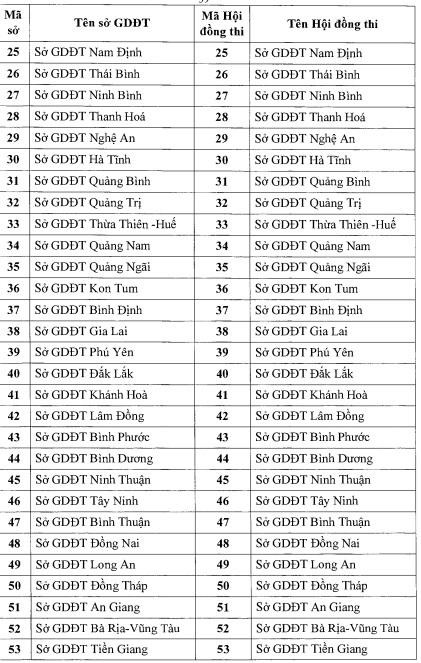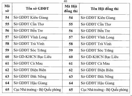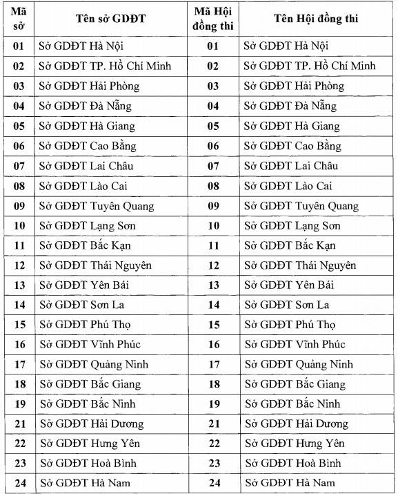 Cụ thể, 64 Hội đồng thi bao gồm: