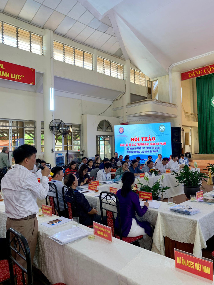 Bên cạnh đó, các nhà trường chia sẻ thêm về kinh nghiệm xây dựng mô hình trường phổ thông liên cấp trong trường cao đẳng sư phạm; xây dựng và tổ chức thực hiện chương trình bồi dưỡng thường xuyên, bồi dưỡng giáo viên để thực hiện chương trình giáo dục phổ thông 2018, đáp ứng yêu cầu đổi mới Giáo dục và Đào tạo.