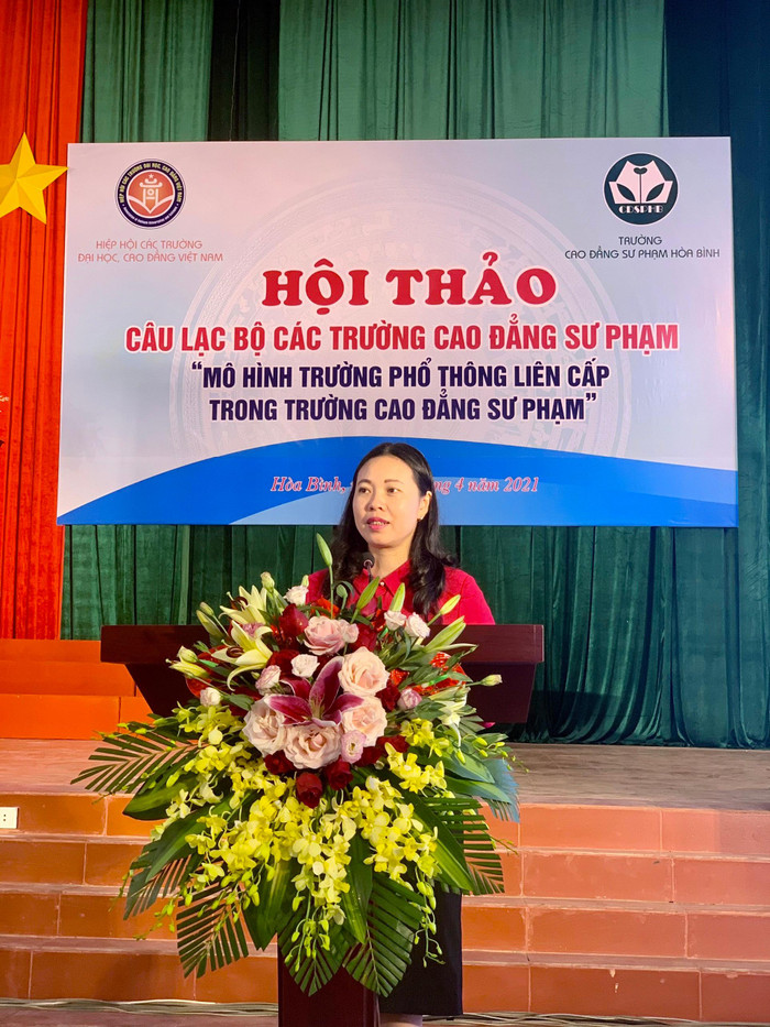 Ngày 08 tháng 4 năm 2021 tại trường Cao đẳng Sư phạm Hòa Bình, Câu lạc bộ các trường Cao đẳng Sư phạm thuộc Hiệp hội Các trường đại học, cao đẳng Việt Nam đã tổ chức Hội thảo với chủ đề “Mô hình trường Phổ thông liên cấp trong trường Cao đẳng Sư phạm” với mục đích nhằm tạo ra diễn đàn để các trường Cao đẳng Sư phạm, trường Cao đẳng có đào tạo giáo viên và có mô hình trường phổ thông thực hành cùng nhau trao đổi, chia sẻ nhận thức, kinh nghiệm về xây dựng, điều hành và tổ chức thực hiện các hoạt động giáo dục của trường phổ thông liên cấp trong trường Cao đẳng Sư phạm, công tác tuyển sinh, bồi dưỡng giáo viên và thảo luận một số nội dung quan trọng khác của Câu lạc bộ.