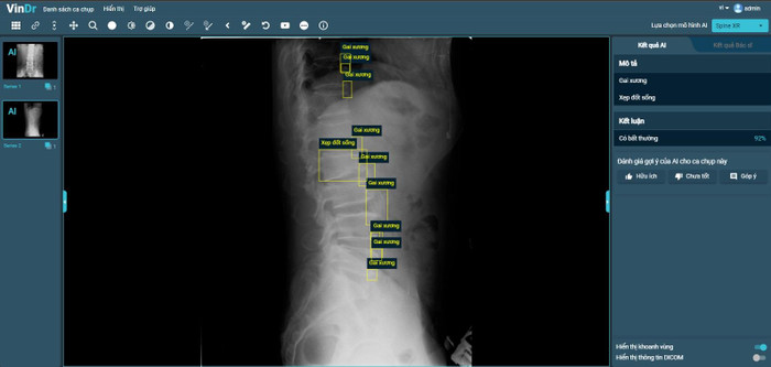Sau hơn 1 năm tiếp tục nghiên cứu và phát triển, VinBigdata đã tiếp tục phát triển thành công tính năng chẩn đoán X-quang cột sống, phát hiện 6 loại tổn thương phổ biến tại Việt Nam, bao gồm: gai xương; hẹp khe đĩa đệm; vật liệu phẫu thuật; hẹp lỗ tiếp hợp; trượt đốt sống và xẹp đốt sống với độ chính xác khoảng 90%.