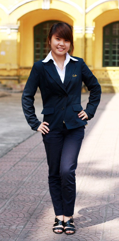| Điểm nhấn của đồng phục trường Chu chính là phù hiệu CVA trên ngực trái. |