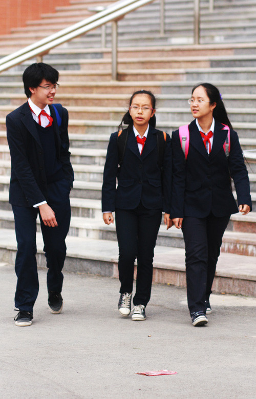 | Giải thích về bộ đồng phục "đại trà", thầy Hiệu trưởng Nguyễn Hữu Chiệu nói: “Quan điểm của trường đồng phục chỉ cần thể hiện “bản sắc”, “thương hiệu” của trường. Trường càng tốt, các em càng tự hào về trường của mình. Đồng phục chứ không phải đồ trang sức, không phải để đi dạ hội". |