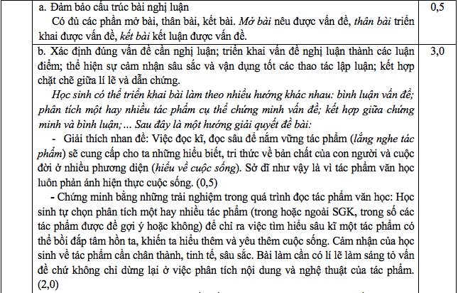 Đáp án đề thi cũng rất mở, có nhiều "đất" cho học sinh sáng tạo mà không cần phải học thuộc lòng văn mẫu, cụ thể như sau: