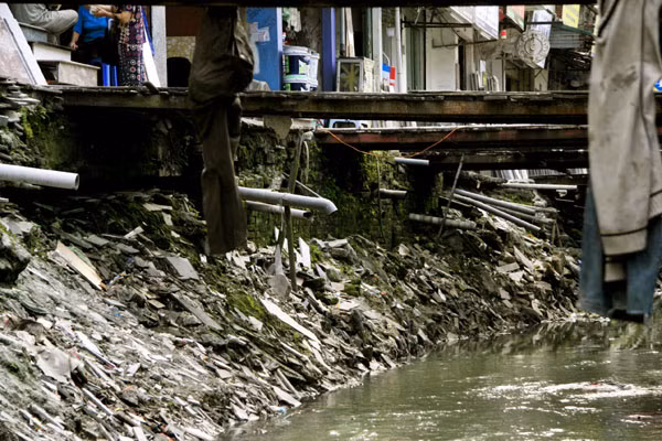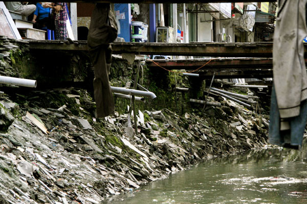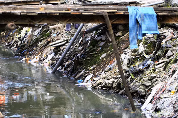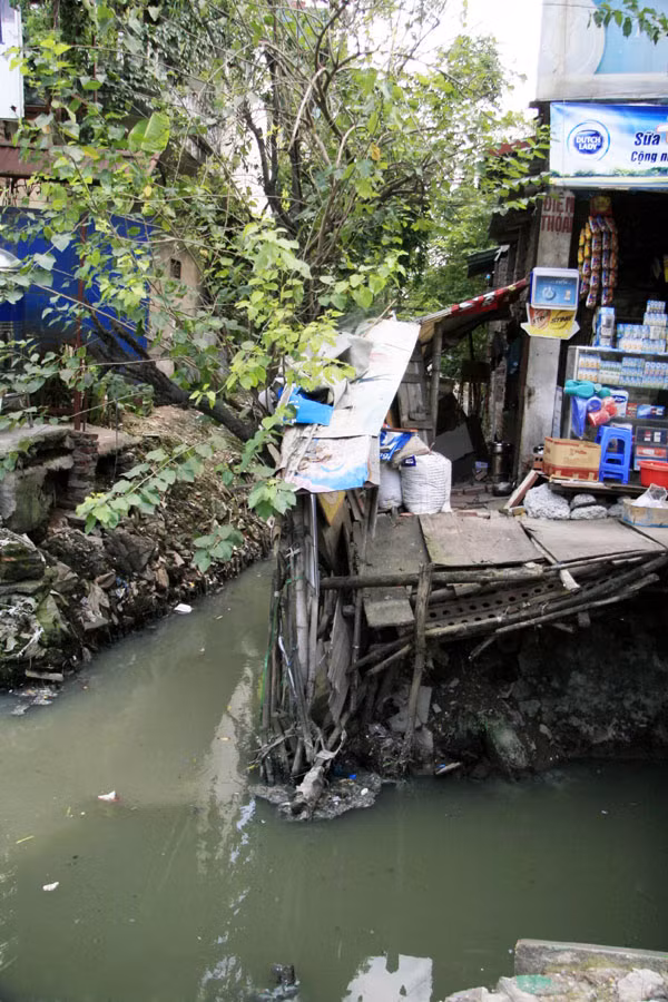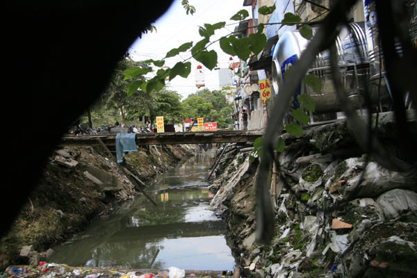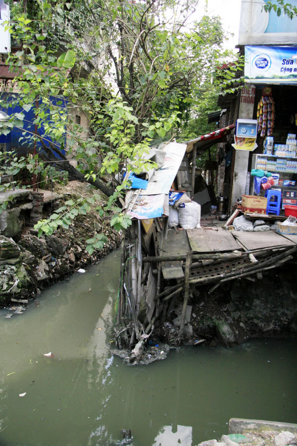 | Cuộc sống của người dân bên con mương này từ lâu đã theo kiểu "sống chung với lũ" vì chưa biết khi nào dự án cải tạo mới lại được thực hiện |