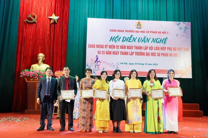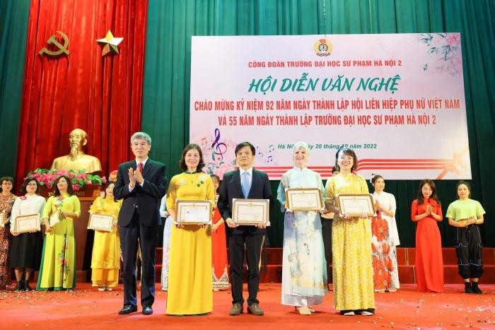 Trong dịp này, Công đoàn Trường Đại học Sư phạm Hà Nội 2 đã trao thưởng các danh hiệu thi đua “Giỏi việc trường - Đảm việc nhà” năm học 2021-2022 cho 274 cá nhân, 18 tập thể; Danh hiệu Cá nhân nữ viên chức tiêu biểu “Giỏi việc trường - Đảm việc nhà” cho 47 nữ viên chức và 08 tập thể nữ viên chức tiêu biểu “Giỏi việc trường - Đảm việc nhà” năm học 2021-2022.