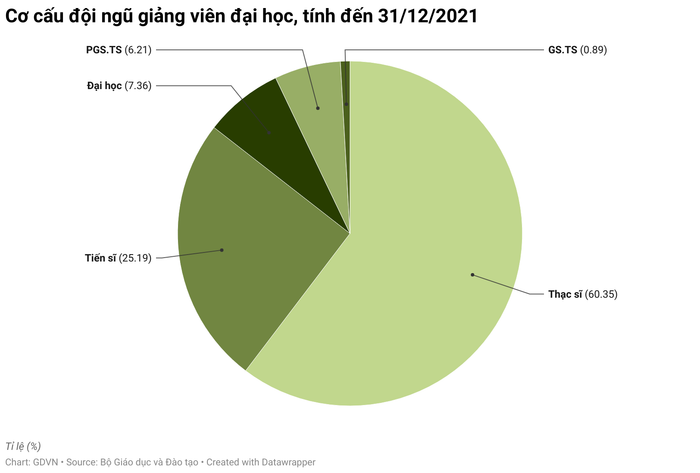 Theo báo cáo của Vụ Giáo dục Đại học (Bộ Giáo dục và Đào tạo) tại hội nghị tổng kết năm học 2021-2022 và triển khai các nhiệm vụ trọng tâm năm học 2022-2023 khối Giáo dục đại học cho thấy, tỉ lệ giảng viên đại học đạt chức danh giáo sư là 0,89%, phó giáo sư 6,21%. Tỉ lệ này được đánh giá là thấp và đã giảm so với thống kê năm 2010.