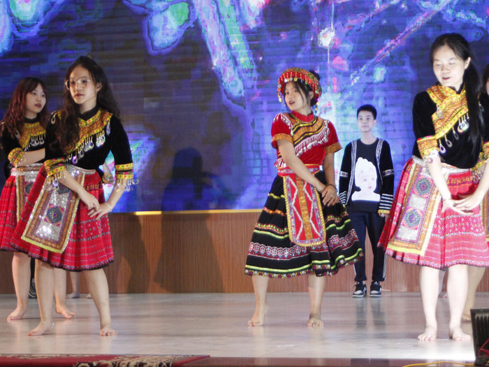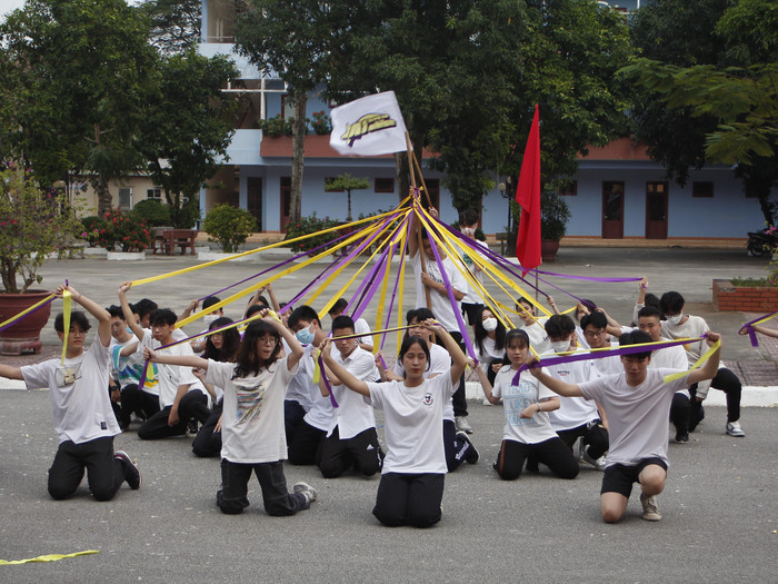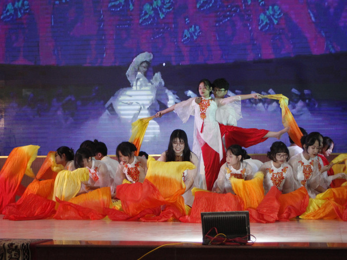 | Các tiết mục văn nghệ tới từ các khối lớp của Trường Trung học phổ thông Đinh Tiên Hoàng. Ảnh: Trần Lý |
