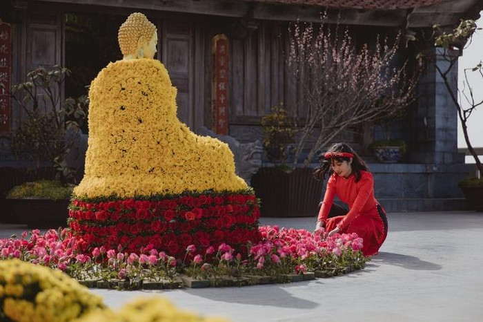 Đến Sun World Fansipan Legend là đến với miền sơn cước hoa nở bốn mùa. Đặc biệt dịp Tết, sắc xuân bừng lên với cải vàng, mận trắng, đào hồng phủ kín từ lối vào khu vực Nhà ga đi cáp treo tới đỉnh Fansipan. Tết con mèo năm nay, Khu du lịch Sun World Fansipan Legend bày trí tiểu cảnh Kim Mão và Bạch Mão như lời chào mừng đầu xuân và lời chúc lộc tài đến với du khách trong năm mới. Bên cạnh đó, các tiểu cảnh mèo thổ cẩm cũng được bố trí dọc theo hành trình khám phá vùng đất thiêng.