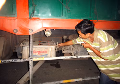Vừa ập đến, chúng leo lên buồng lái quan sát nhưng không phát hiện tài sản nào đáng giá nên quay xuống tháo trộm 2 bình ắc quy nằm bên hông xe.