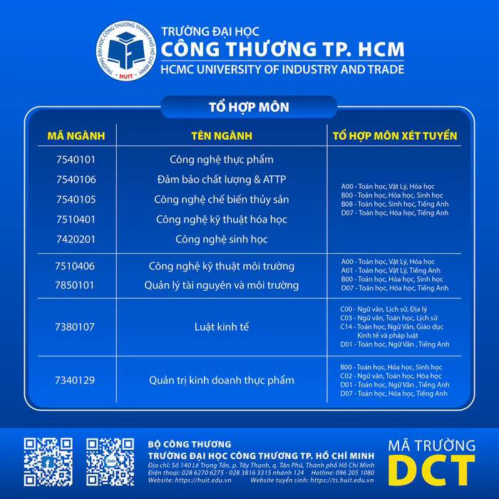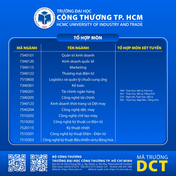 Tổ hợp xét tuyển, các ngành tuyển sinh trong năm 2025 của Trường Đại học Công Thương Thành phố Hồ Chí Minh dự kiến như sau: