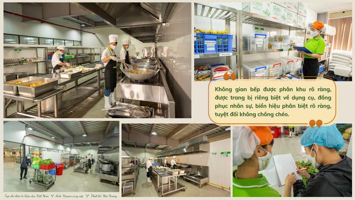 Tất cả bếp ăn trường học của đơn vị này đều được thiết kế và xây dựng theo mô hình “bếp một chiều” - nguyên tắc vàng trong ngành suất ăn để ngăn ngừa nguy cơ lây nhiễm chéo giữa thực phẩm sống và thực phẩm chín.
