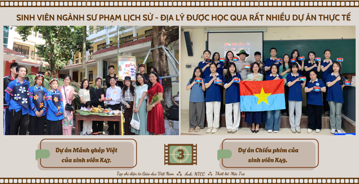Ba là, ưu thế về tính thực tiễn. Chương trình học được thiết kế với thời lượng lớn dành cho các hoạt động thực hành, thực tế. Sinh viên không chỉ ngồi trên giảng đường, mà còn được trực tiếp tham gia các chuyến điền dã, khảo sát thực địa tại các di tích lịch sử, các vùng địa lý đặc trưng, đặc biệt, được thực tập tại các trường phổ thông”.