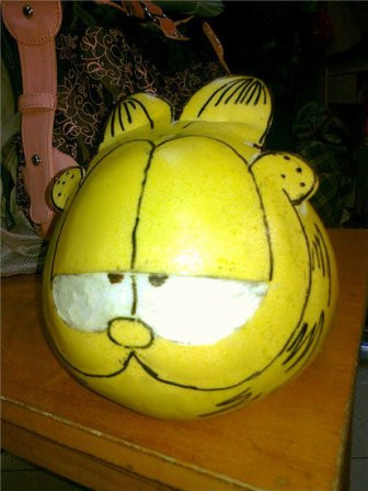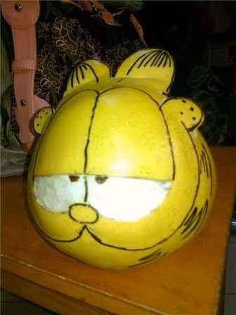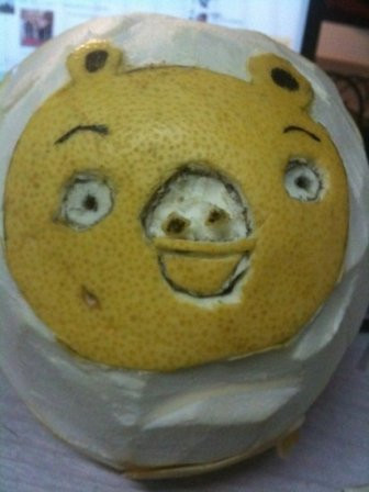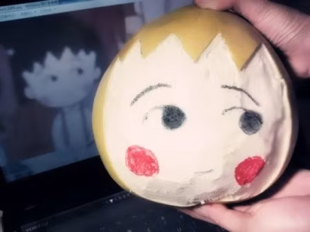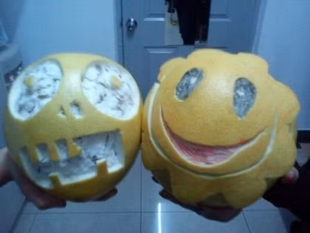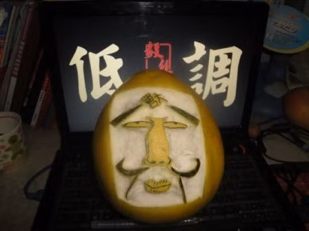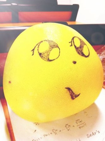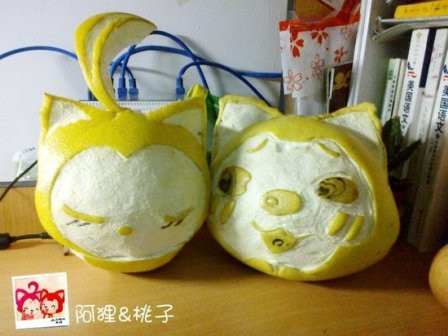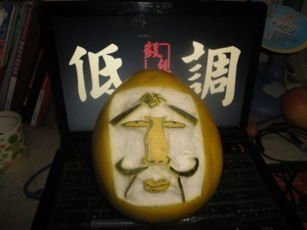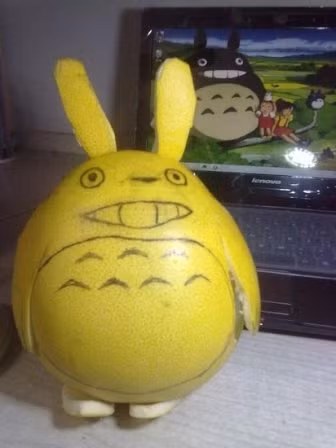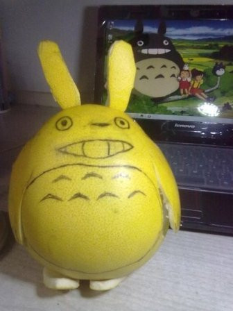 | Quả bưởi được cắt tỉa thành khuôn mặt chú mèo máy Doreamon thông minh |