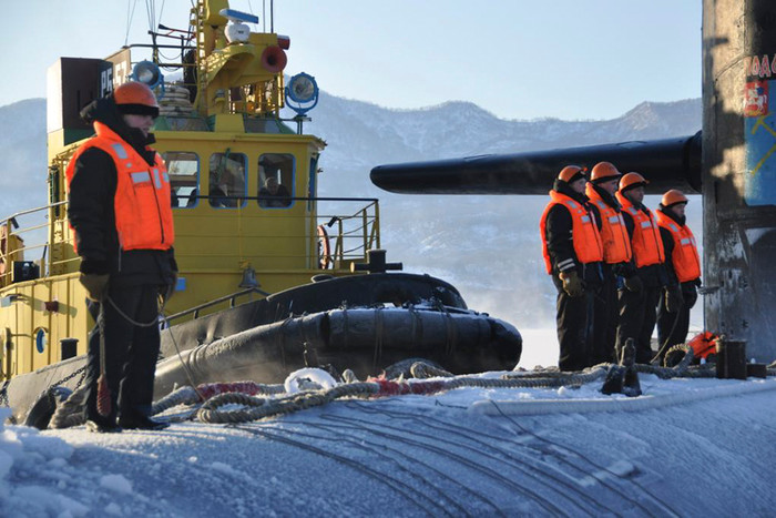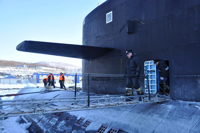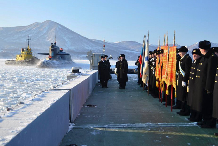 (GDVN) - Podolsk – một trong những tàu ngầm hạt nhân mang tên lửa đạn đạo thuộc biên chế của Hạm đội Thái Bình Dương đã quay trở về căn cứ. Đây là kỳ nghỉ Năm Mới của các quân nhân phục vụ trên tàu. Các thuỷ thủ và sỹ quan chỉ huy của tàu ngầm Podolsk đã có cơ hội gặp gỡ người thân và gia đình nhân dịp cuối năm.