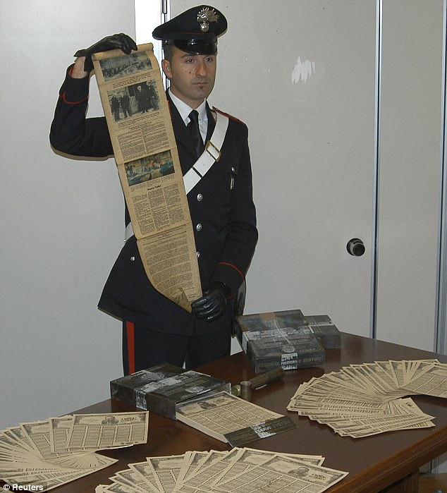 Trong năm 2009, cảnh sát Ý cũng đã tịch thu 742 tỷ USD trái phiếu giả tại thị trấn miền bắc Chiasso, giáp biên giới Thụy Sỹ.