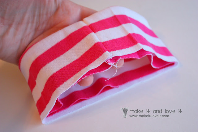 Sau đó, lộn ngược tấm vải hình chữ nhật và gấp miếng thanh một ống hợp hơn.