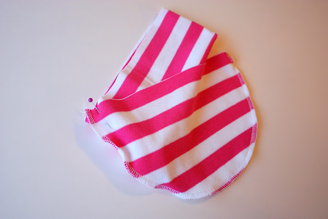 Với tấm vải hình bán nguyệt, bạn bắt theo đường viền, trừ phần miệng mũ.