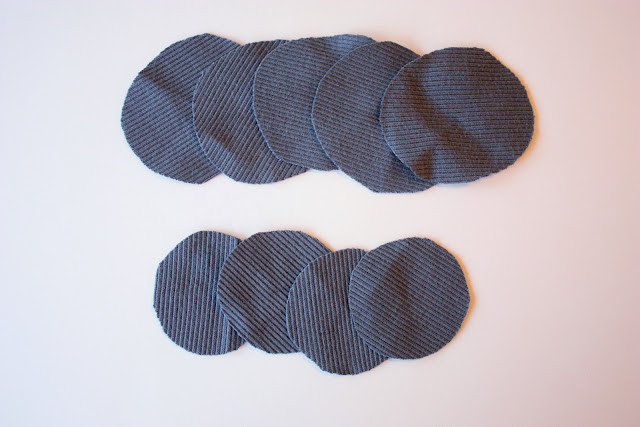 Dùng một miếng vải khác màu, cắt thành 5 vòng tròn lớn và 4 vòng tròn nhỏ hơn.