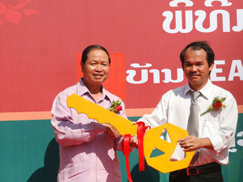 | Bầu Đức thường xuyên có mặt tại các lễ động thổ, khánh thành các công trình do Hoàng Anh Gia Lai đầu tư xây dựng tại Lào. Trong ảnh cùng phó thủ tướng TT CP Lào cắt băng khánh thành một cây cầu. |