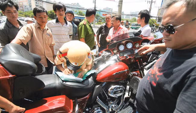 Nhiều chiếc xe vi phạm mang biển "NN" vốn dành cho các tổ chức, văn phòng đại diện và cá nhân nước ngoài. Có thể nhận ra không ít những "gương mặt" nổi tiếng trong dàn xế bị phạt như Harley-Davidson Road King, Fatboy và Rocker C 2011, Can-Am Spyder RT, Suzuki Hayabusa... Khi về Việt Nam, những chiếc xe kể trên đều có giá từ vài trăm triệu đồng trở lên.