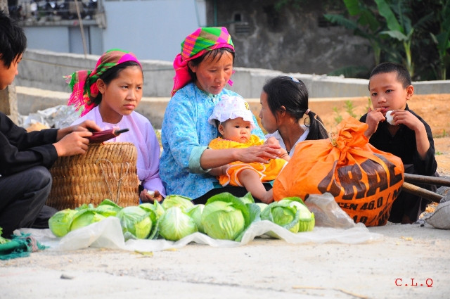 | Cả gia đình đến phiên chợ. |