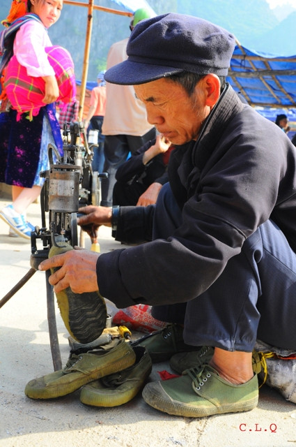 | Nơi đóng sửa giày trong phiên chợ |