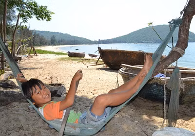 | Những ngôi nhà của dân chài nằm tĩnh lặng dưới rừng dương liễu xanh mướt mà chỉ cần nhảy vài bước chân là bạn có thể hòa mình trong làn nước trong vắt, mát rượi. |