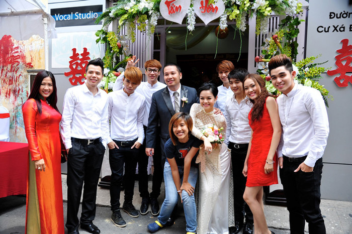 | Rất nhiều anh em, bạn bè là nghệ sỹ tới chia vui với cặp vợ chồng trẻ như Ưng Hoàng Phúc, nhóm nhạc 365. |